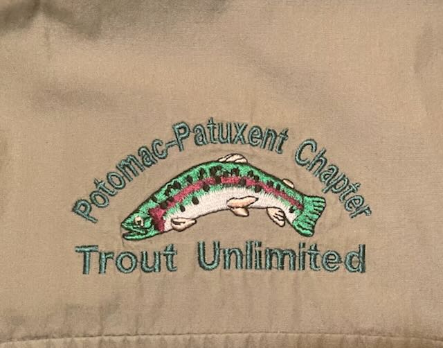 Each shirt comes embroidered with the "Potomac Patuxent Chaper of Trout Unlimited" with a colorful trout jumping through the middle of it above the right pocket. Shirt(s) is supplied by member to be embroidered and returned. Cost is $20.