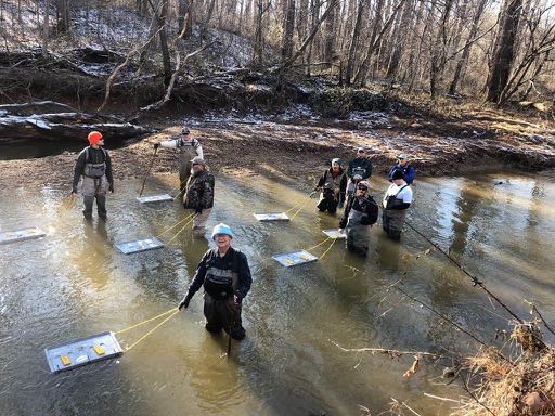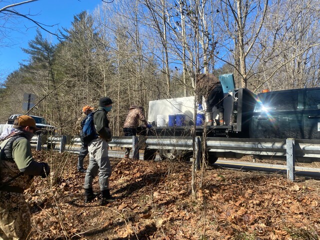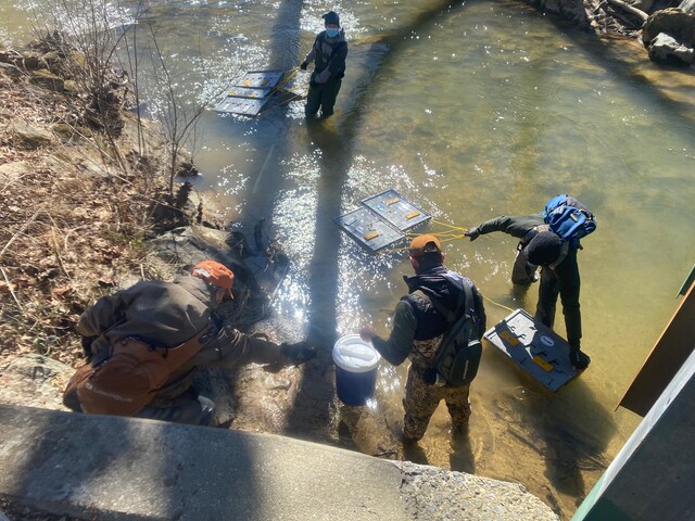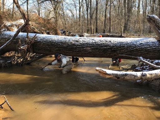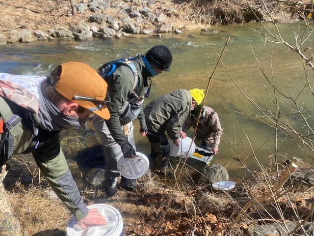 I had the privilege yesterday of being on the team to stock the Pax from Hipsley Mill all the way down to the trail which leads up to Jennings Chapel Way. The team including Carson Wargo (high school senior many of you have met who loves fishing, ties flies and was the key to our success yesterday), Jeff Martell (even older than me -haha - and likes to fish and has participated in other stockings previously) and Sharif Soliman (30 years old ish, loves to fish and always wanted to help stock. Sharif is a big outdoors guy!)