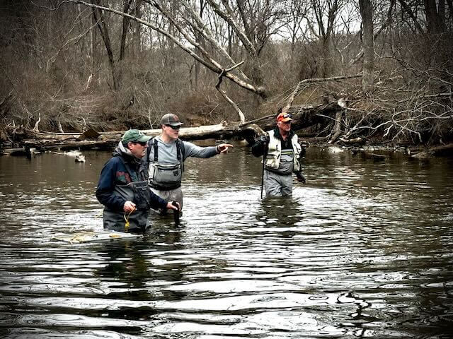 To that end, we had instructions to stock in certain areas I was previously familiar with as well as the area where Peter Schuler took me Sunday. There was then about 3/4 mile of river I had never seen as we approached the last section. We had to make decisions on where to stock in that area. There were lots of opportunities! We collectively decided that there needed to be good water flow going into an area such as a good strong riffle going over rocks where we could actually see the drop in elevation (creates oxygen). Once we met our first criterion, both Carson and Sharif walked through the prospective stocking area which could have been a tree or an undercut bank or a bend in the river to measure the depth, the water flow again and the structure. They looked for big rocks and/or undercut banks or a tree laydown, a tree root system, etc.